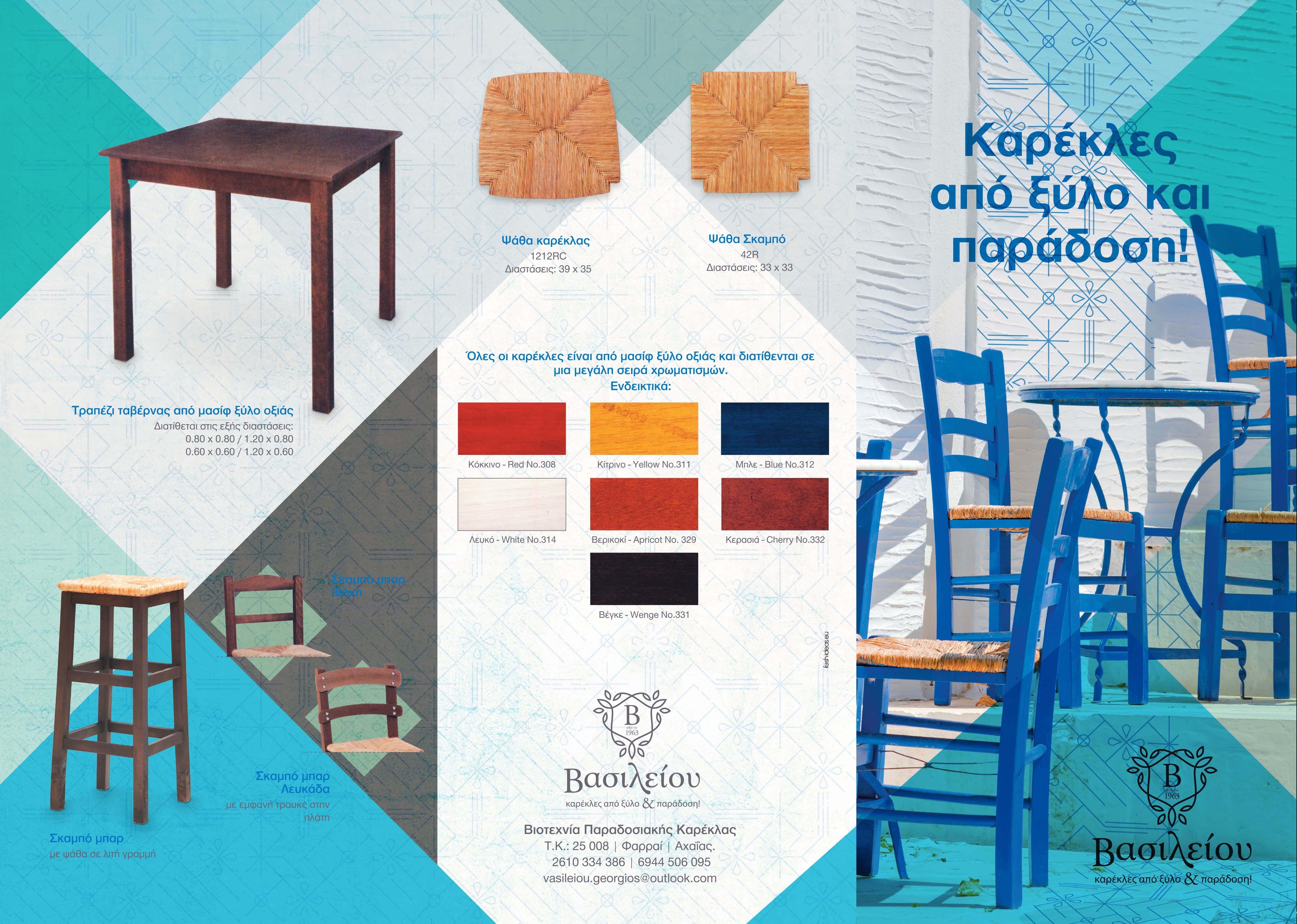 Στη βιοτεχνία ΒΑΣΙΛΕΙΟΥ, στην Πάτρα, μπορείτε να βρείτε καθίσματα επαγγελματικών χώρων και εξοπλισμό εστίασης αρίστης ποιότητας!